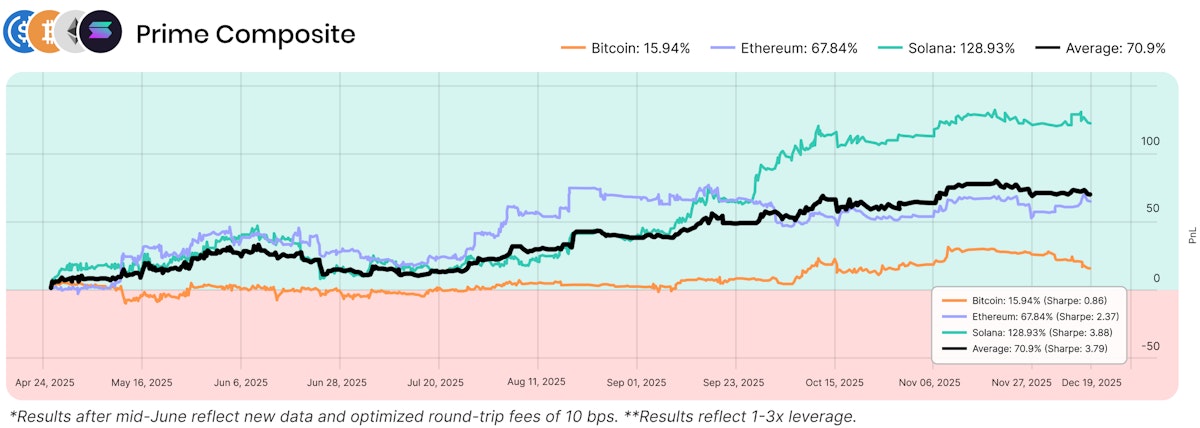 In 2025, the digital asset landscape was defined by high-dimensional complexity and intense periods of volatility. While many traditional models struggled to find a consistent edge, the Seneca Intelligence Engine demonstrated the power of a confidence-gated approach. By moving beyond simple price prediction and focusing on regime-aware position management, Seneca delivered institutional-grade performance across major asset classes.