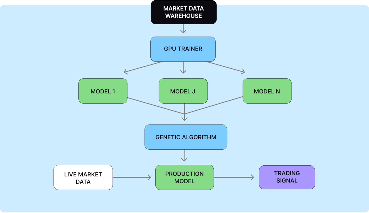 - Genetic Model Optimization: Financial markets evolve, and so does Seneca. We utilize a proprietary genetic algorithm that evolves and selects asset-specific transformer variants. This "survival of the fittest" approach ensures that only the most precise and efficient models reach live trading environments.