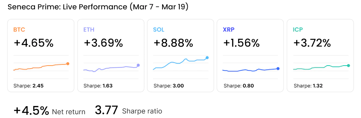 We do not publish analysis without showing the underlying results. Here is where our live strategies stood for the period March 7 through 19, 2026, one of the most dislocated macro environments of the quarter.