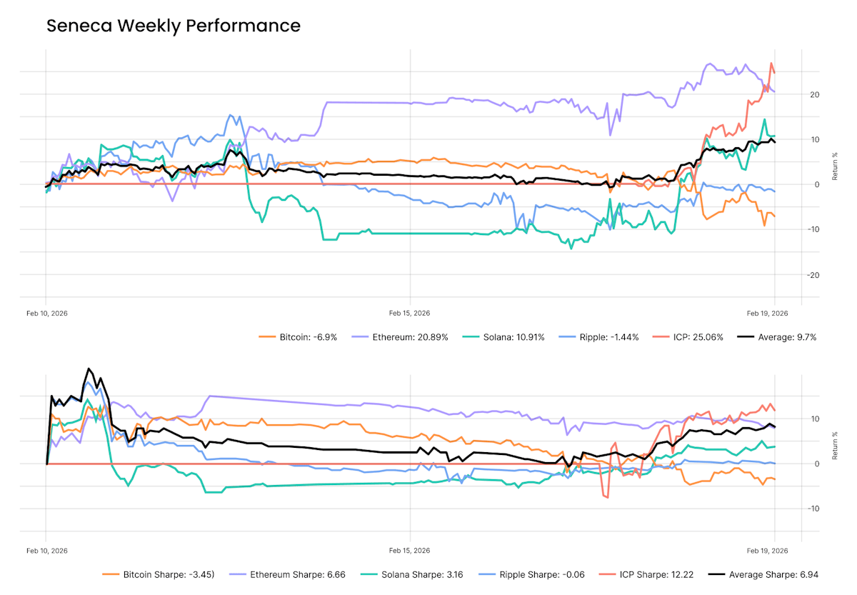 This week’s results reinforce a broader trend of institutional stability. Since inception, the Seneca Engine has delivered an elite 8.94 Sharpe Ratio, significantly outperforming the "Buy & Hold" volatility of BTC and ETH. By capping drawdowns at 15.85%, we continue to provide the capital preservation that unmanaged crypto holdings lack.